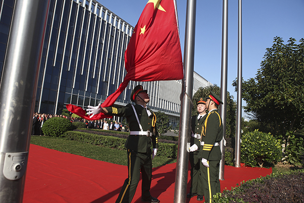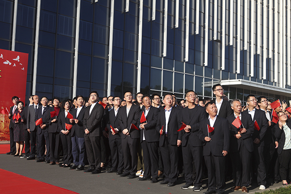 最后,全體員工合唱《沒有共產(chǎn)黨就沒有新中國》。在洪亮的歌聲中,升旗儀式圓滿的落下帷幕。